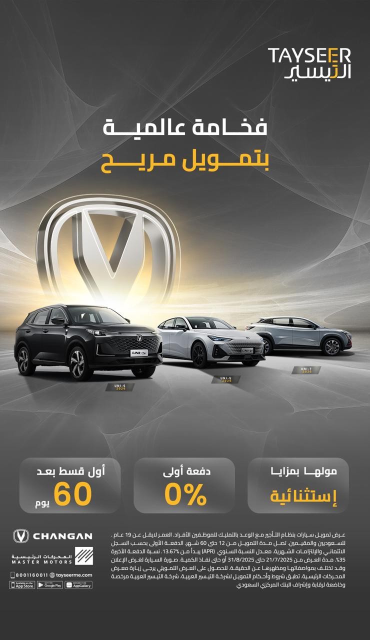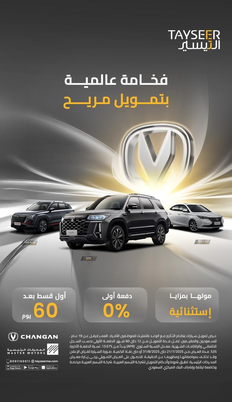 عروضنا لك #خلك_شانجان *تطبق شروط واحكام الجهات التمويلية بإلغاء العروض في أي وقت حسب التغييرات العالمية وكذلك حسب سجل العميل. *للجهة التمويلية الحق بتغيير قيمة الدفعة الأولى أو نسبة الربح أو الدفعة الأخيرة – بدون تدخل المحركات الرئيسية