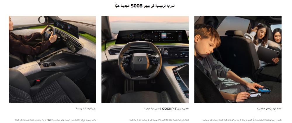 بيجو 5008 سيارة SUV عائلية تجمع بين الرحابة، التصميم العصري، والتقنيات المتطورة.